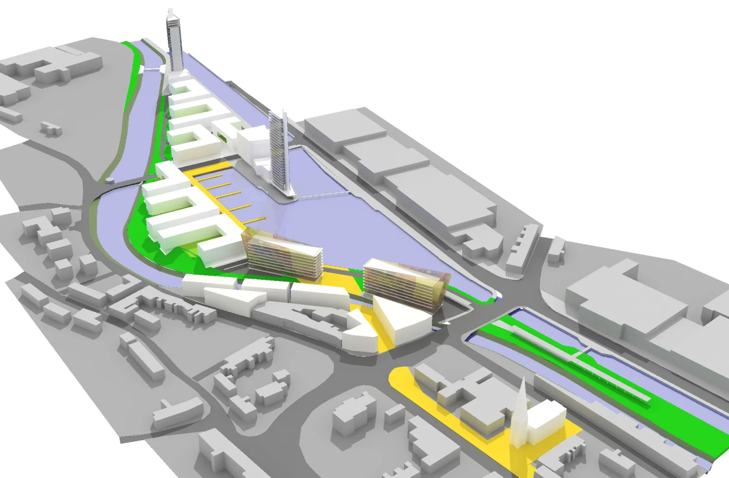Studio Partington, working with The Carvill Group, were shortlisted for the mixed-use redevelopment of the Albert Basin site in an open design competition. An unrealised gem in the centre of Newry City, the Albert Basin lies unseen, unused and under developed. The 15-acre site is situated at the head of Carlingford Lough, nestled between the Mourne and Cooley Mountains and between the two historic waterways of the Clanrye River and the Newry Canal. It has a unique location of being in the centre of Newry City and also being part of the Greater Eastern Greenway route of Ireland (Lough Neagh to Greenore).