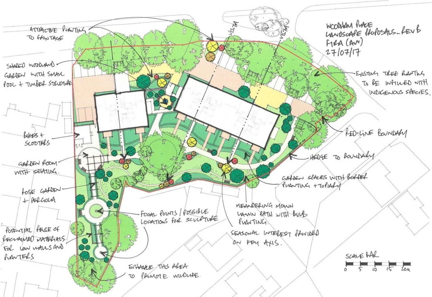 It recognises the woodland setting and orientation of the site as the main opportunities for design and innovation.